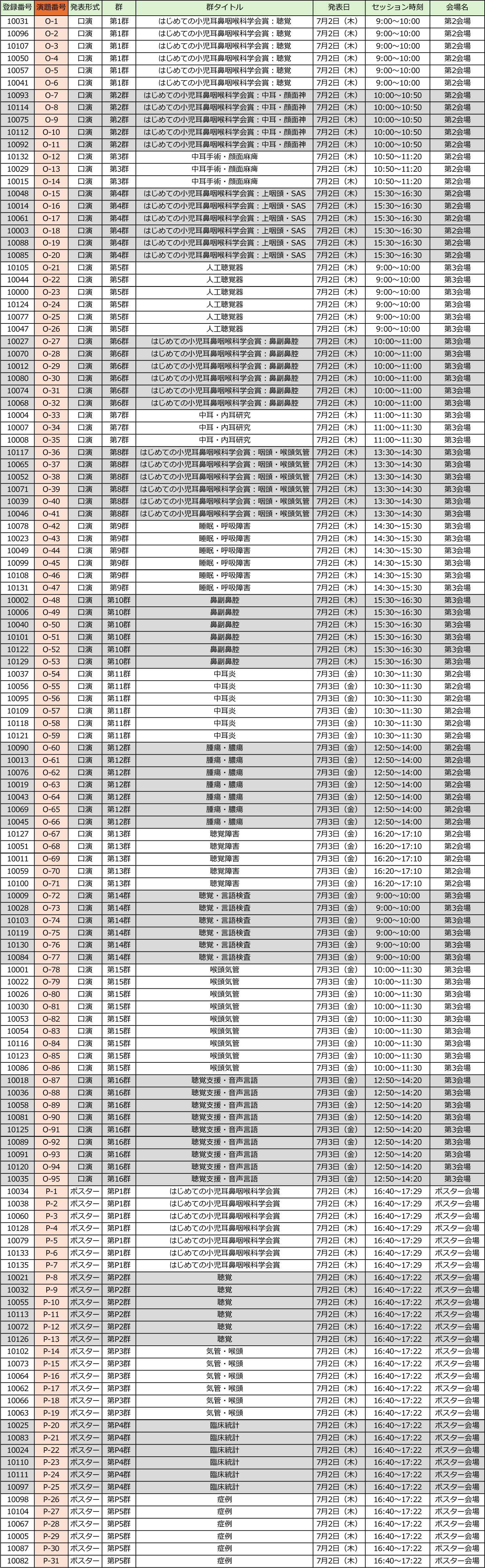一般演題採択情報:演題番号順一覧
